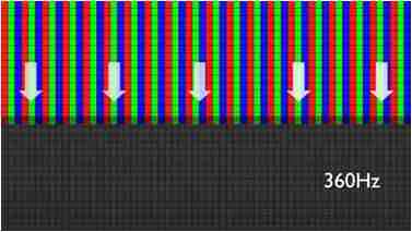传统液晶驱动是从左到右单向进行,,在画面更新速度愈来越愈快的情况下,,,,位于驱动线路末端的右下角区域,,,,画素的闸极来不及在短时间内获得足够电压,,,无法显示出正确的颜色资讯。。。。 |